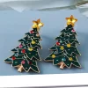 Alloy Inlaid Rhinestone Christmas Tree Earrings – Green