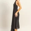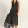 Chiffon Halter Asymmetrical Hem Dress – Black