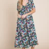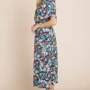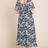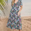 Floral Print Sweetheart Neck Tie Front Midi Dress – Black Combo