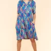 Johnny Collar Babydoll Dress with Side Pockets – Blue