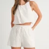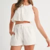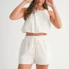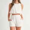 Eyelet Bubble Hem Sleeveless Top and Shorts Set – Off White