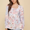 Floral Sweetheart Neckline Button Down Blouse – Purple
