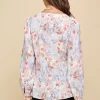Floral Sweetheart Neckline Button Down Blouse - Purple