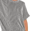 A Corded Rib Short Sleeve T-Shirt is a versatile and stylish top that features a textured corded ribbed fabric and short sleeves. The corded rib detailing adds visual interest and dimension to the t-shirt, creating a unique and trendy look. The short sleeves provide a casual and comfortable fit, making it suitable for everyday wear. This t-shirt can be dressed up with a skirt or trousers for a more polished outfit or paired with jeans for a relaxed and laid-back vibe. The Corded Rib Short Sleeve T-Shirt is a chic and versatile wardrobe staple that can be easily dressed up or down for various occasions.
