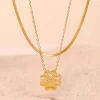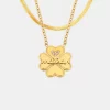 2 Piece 18K Gold-Plated Inlaid Zircon Lucky Clover Necklace – Gold