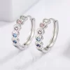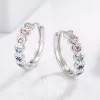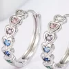 925 Sterling Silver Inlaid Zircon Heart Huggie Earrings – Silver