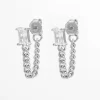 925 Sterling Silver Zircon Chain Earrings – Silver