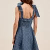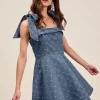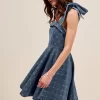A Line Fit and Flare Diamond Bow Ribbon Denim Dres – Denim