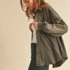 Acid Washed Exposed Seam Button Up Jacket – Army Green