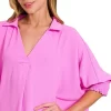 Airflow Collar Tee with Smocked Sleeve Band Top – Bright Mauve