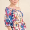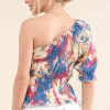 Allover Floral Print Smocked One Shoulder Blouse – Floral