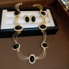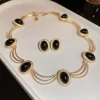 Alloy Oval Gemstone Necklace – Gold