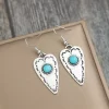 Alloy Turquoise Heart Dangle Earrings – Silver