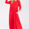 Scoop Neck Side Tie Detail Midi Dress – Tomato