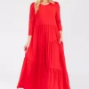 Asymmetric Tiered Midi-Dress – Dk Coral