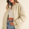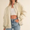 Back Ruched Utiltiy Bomber Jacket – Ecru