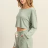Boat Neck Long Sleeve Cropped Top – Sage Green