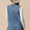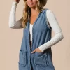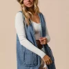 Braided Trim Open Front Denim Vest With Pockets – Medium