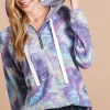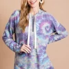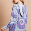 Brushed Circular Tie Dye Print Terry Hoodie – Purple/Jade Multi