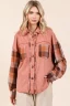 Button Down Contrast Plaid Patchwork Shacket – Terracotta