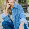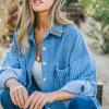 Button Down Corduroy Contrast Texture Long Sleeve Shacket – Blue