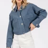 Button Down Cropped Denim Jacket With Patch Pockets – French Blue