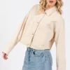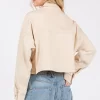 Button Down Cropped Denim Jacket with Patch Pockets – Tan