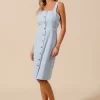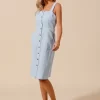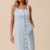 Button Down Pocket Front Pinafore Dress – Lt Denim