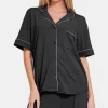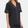 Button Down Short Sleeve Top and Shorts Lounge Set – Black