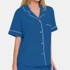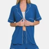 Button Down Short Sleeve Top and Shorts Lounge Set – Classic Blue