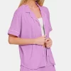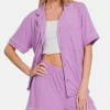 Button Down Short Sleeve Top and Shorts Lounge Set – Heliotrope Purple