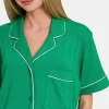 Button Down Short Sleeve Top and Shorts Lounge Set – K Green