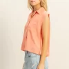 Buttoned Front Sleeveless Collar Shirt – L.Orange