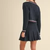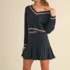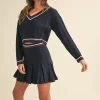 Cable-Knit Top and Pleated Skirt Sweater Set – Dark Navy