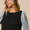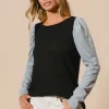 Cable Sweater Knit Top with Contrast Puff Sleeve – Black