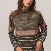 Camouflage French Terry Knit Top is a fashionable and comfortable top made from French terry knit fabric featuring a camouflage print. This top combines the trendy camouflage pattern with the cozy and soft texture of French terry for a stylish and casual look. Perfect for adding an edgy vibe to your everyday outfit, this top is versatile and easy to pair with different bottoms for a chic and on-trend style.