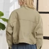 Canvas Button Up Front Denim Jacket – Beige