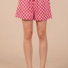Ces Femme Checkered Round Neck Top and Shorts Set – Red