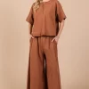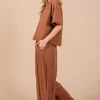 Ces Femme Half Button Half Sleeve Top and Pants Set – Caramel
