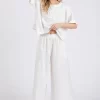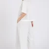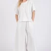 Ces Femme Half Button Half Sleeve Top and Pants Set – White