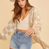 Checkered Open Front Drop Shoulder Cardigan – Tan