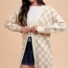 Checkered & Striped Open Front Long Sleeve Cardigan – Latte Combo