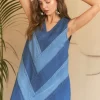 Chevron Color Block V-Neck Denim Dress -   Denim