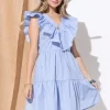 Chevron Ruffle Florence Hem Casual Dress – Sky Blue