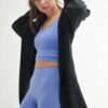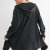 Chunky Waffle Mineral Wash Hooded Open Cardigan – Black