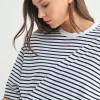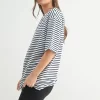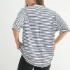 Coastal Cotton Striped Oversized Crewneck T-Shirt – White/Navy