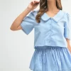 Collared Button Down Crop Top and Skort Set – Lt Blue