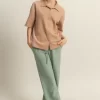 Collared Neck Button Down Waffle Shirt – Dark Taupe