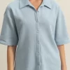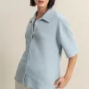 Collared Neck Button Down Waffle Shirt – Ice Blue