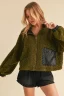 Collared Neck Zip Up Sherpa Jacket – Olive